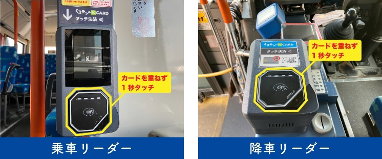 降車時に、運賃箱にある降車リーダーに1秒タッチしてください。